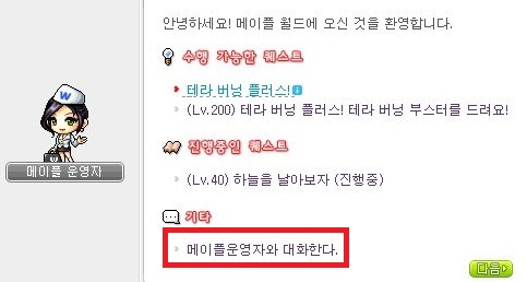 맨 밑 기타에 '메이플 운영자와 대화한다'를