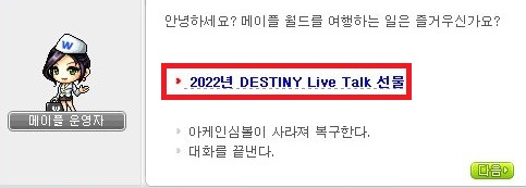 '2022년 DESTINY Live Talk 선물'을