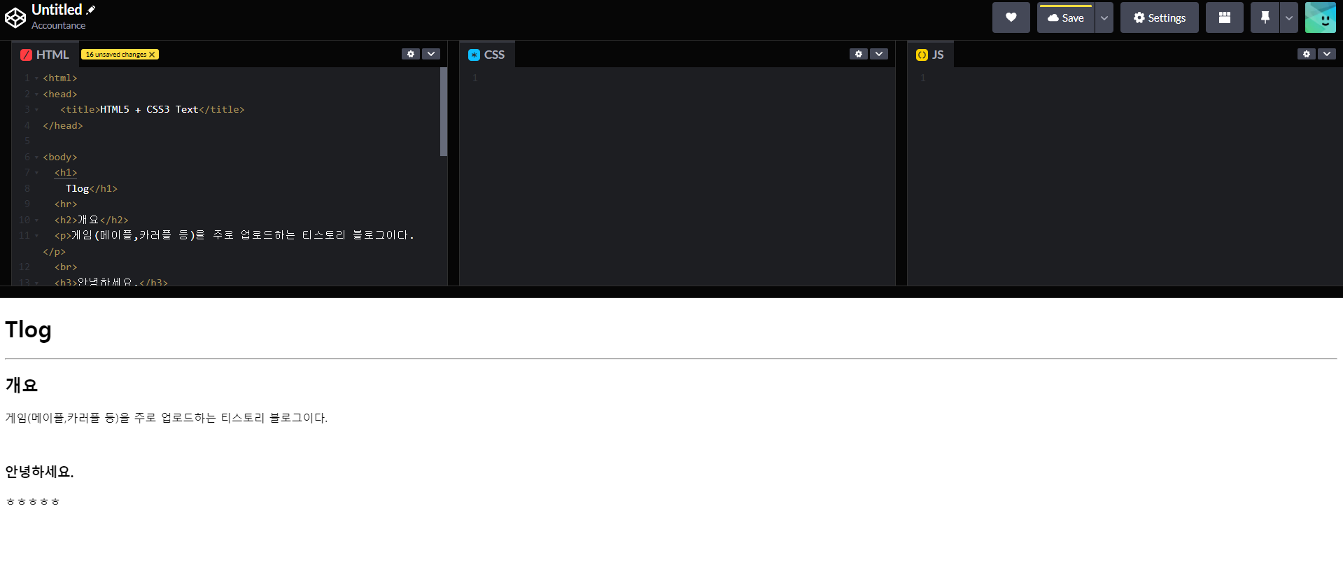 위와 같은 방식으로 코드펜을 이용 가능하다.