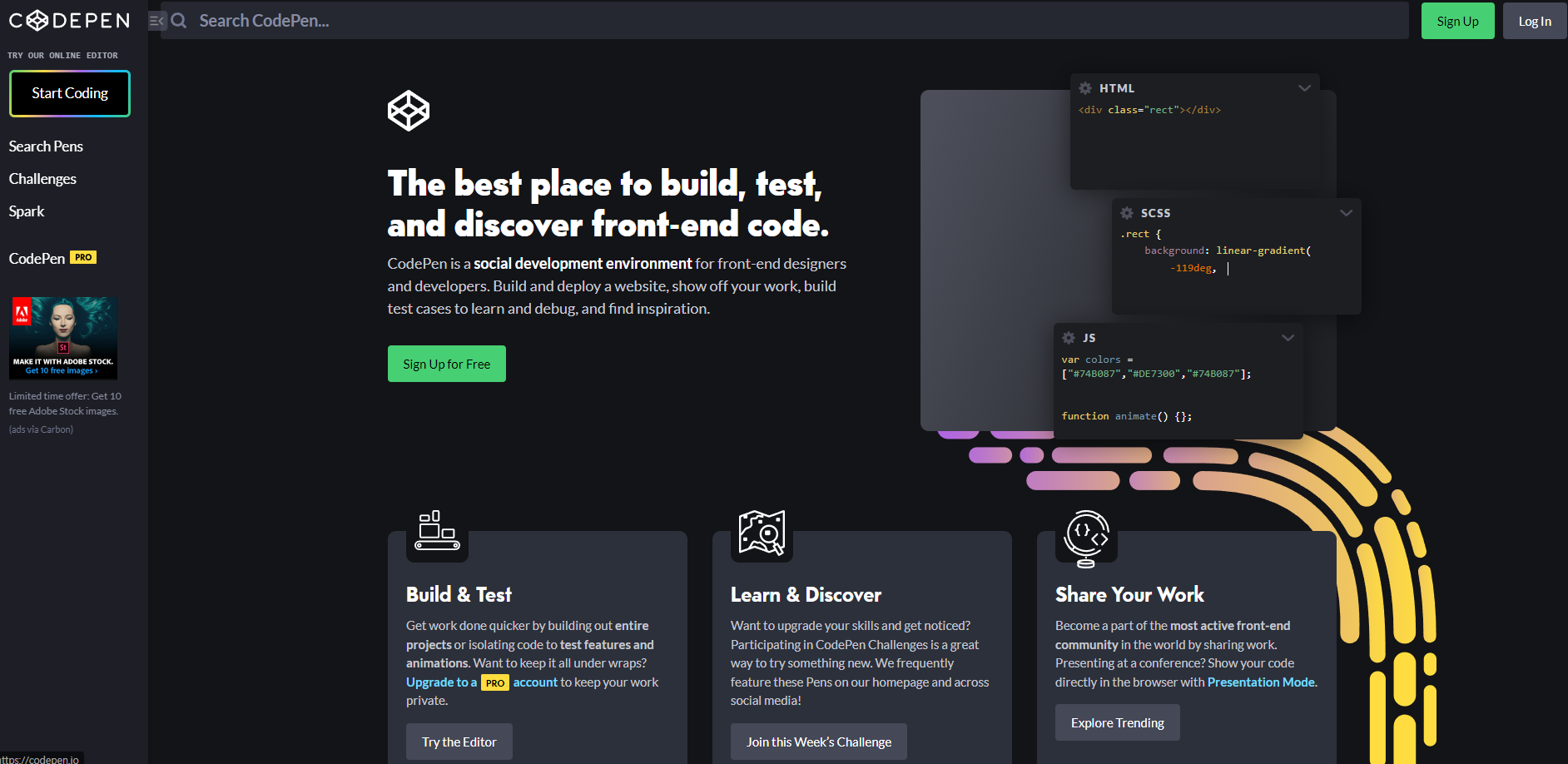 '코드펜'이란 'HTML, CSS, JAVA SCRIPT'등을