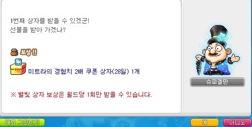 1일차 - 미트라의 경험치 쿠폰 2배 상자