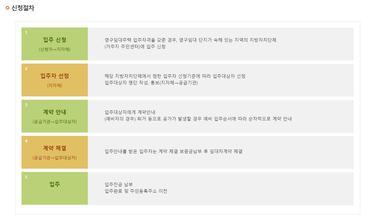 '입주 신청 > 입주자 선정 > 계약 안내 > 계약 체결 > 입주'