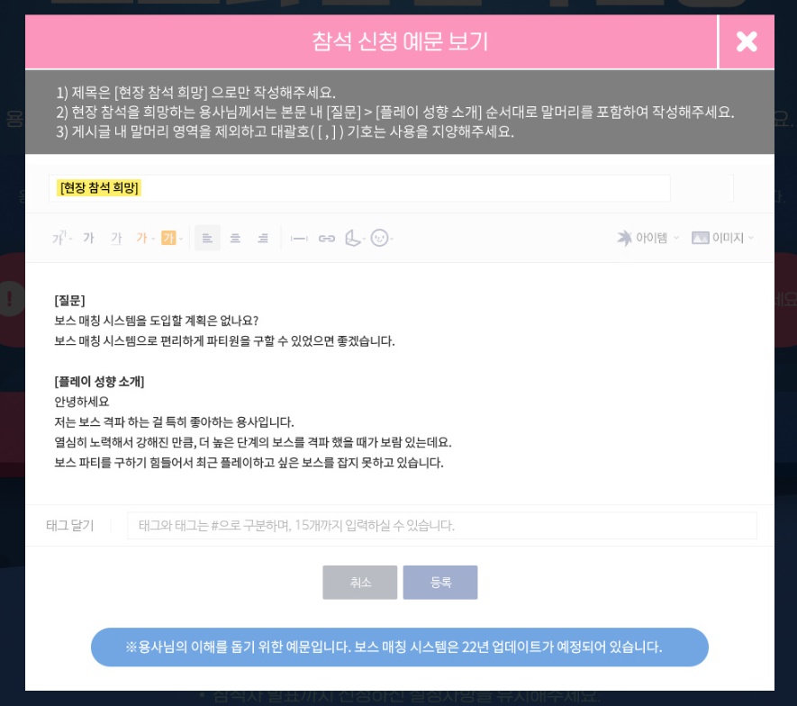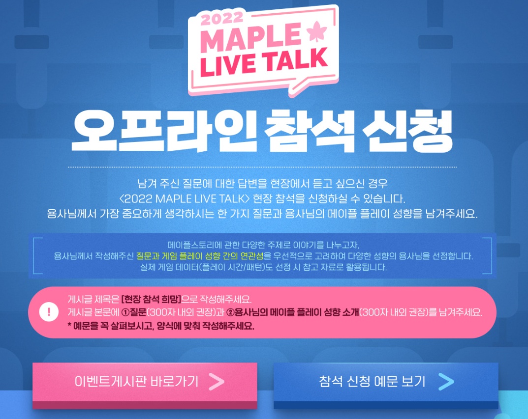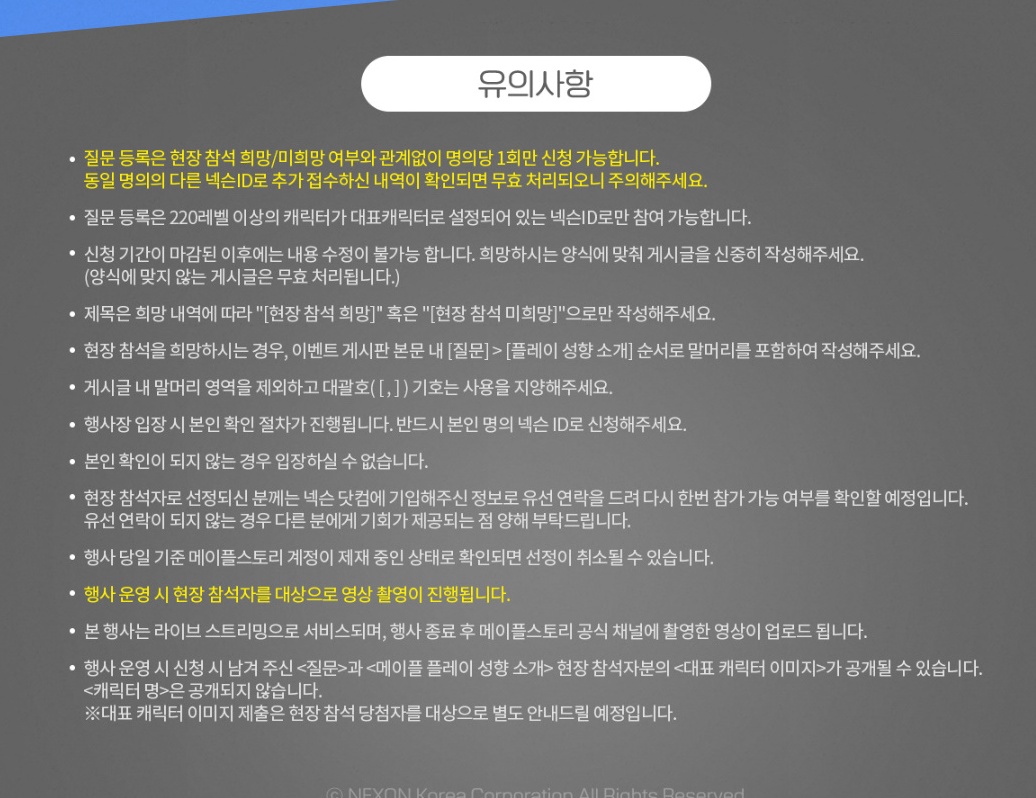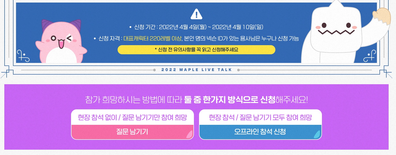 신청 자격 : 대표캐릭터 220레벨 이상, 본인 명의 넥슨 ID가 있는 유저