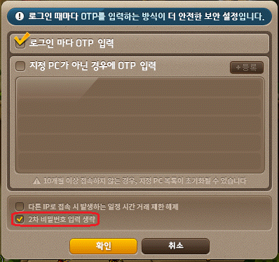 '2차 비밀번호 입력 생략'