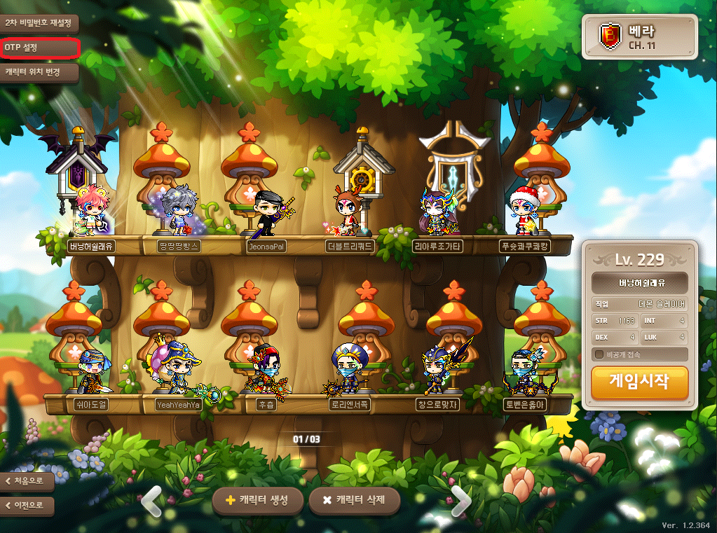 캐릭터 선택 창 좌측 상단에 보시면