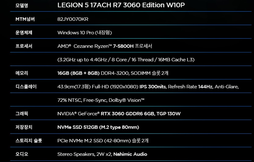 찾아보다가 레노버 리전5 17ACH를 큰맘먹고 비싸게 질렀습니다!