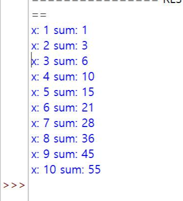 그런식으로 x가 10이 되면 s=s+x이므로 45+10=55.