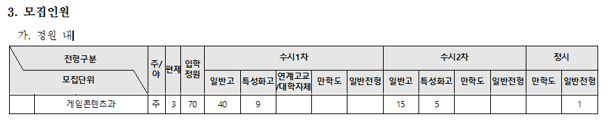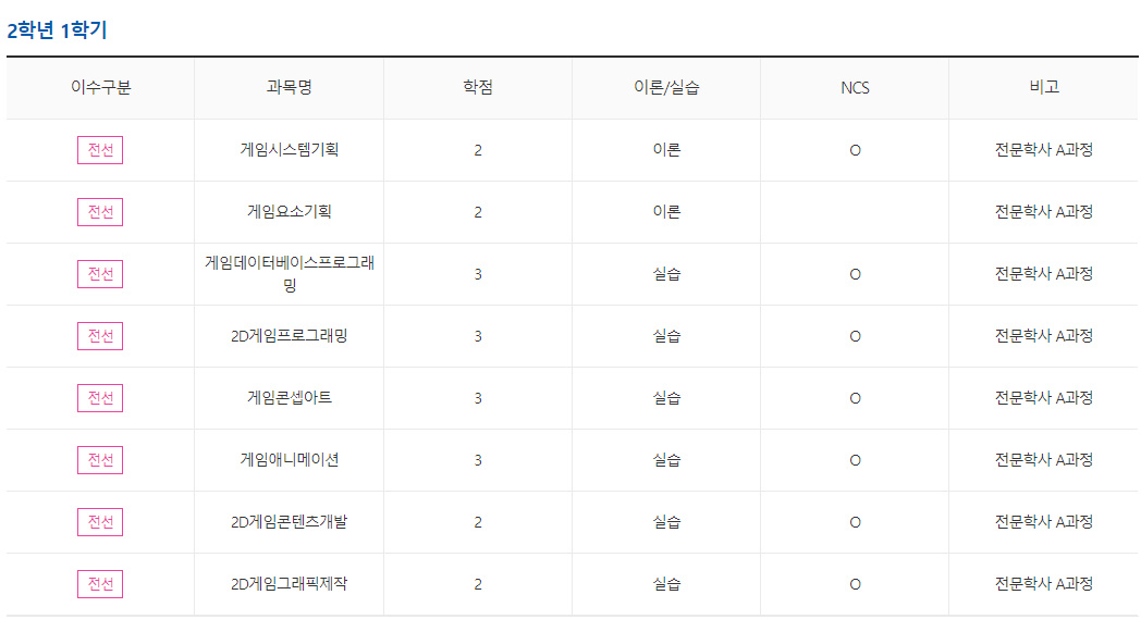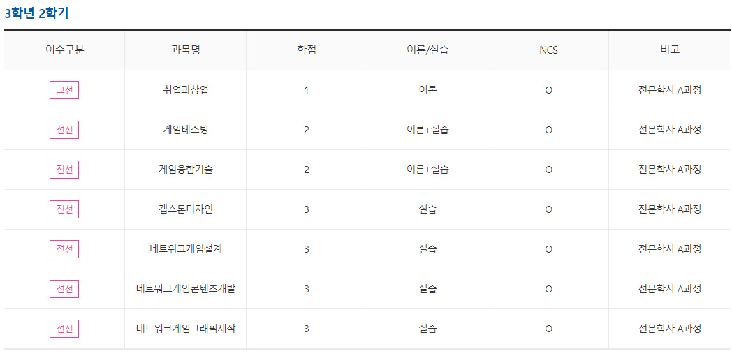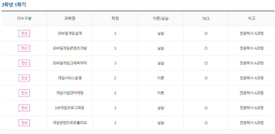 게임콘텐츠과는 '3년제'이기 때문에