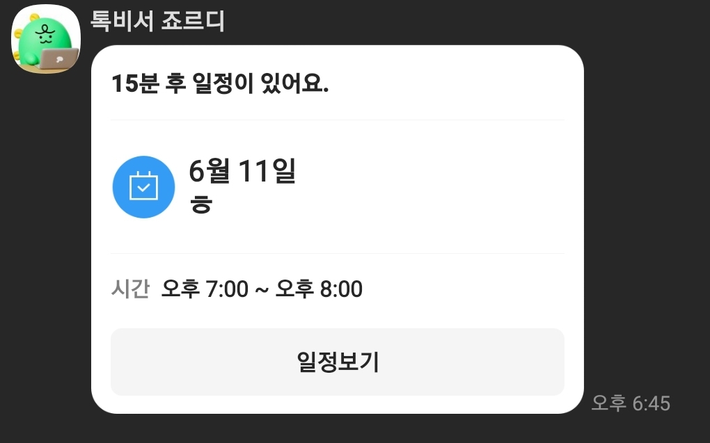 '15분 전'에 알림을 받을 수 있도록 설정도 가능합니다.