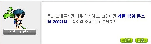 타락파워전사는 '레벨 범위 몬스터 200마리'만