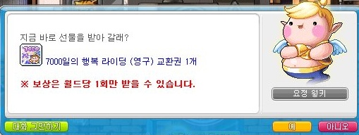 보상으로 '7000일의 행복 라이딩 (영구) 교환권 1개'를