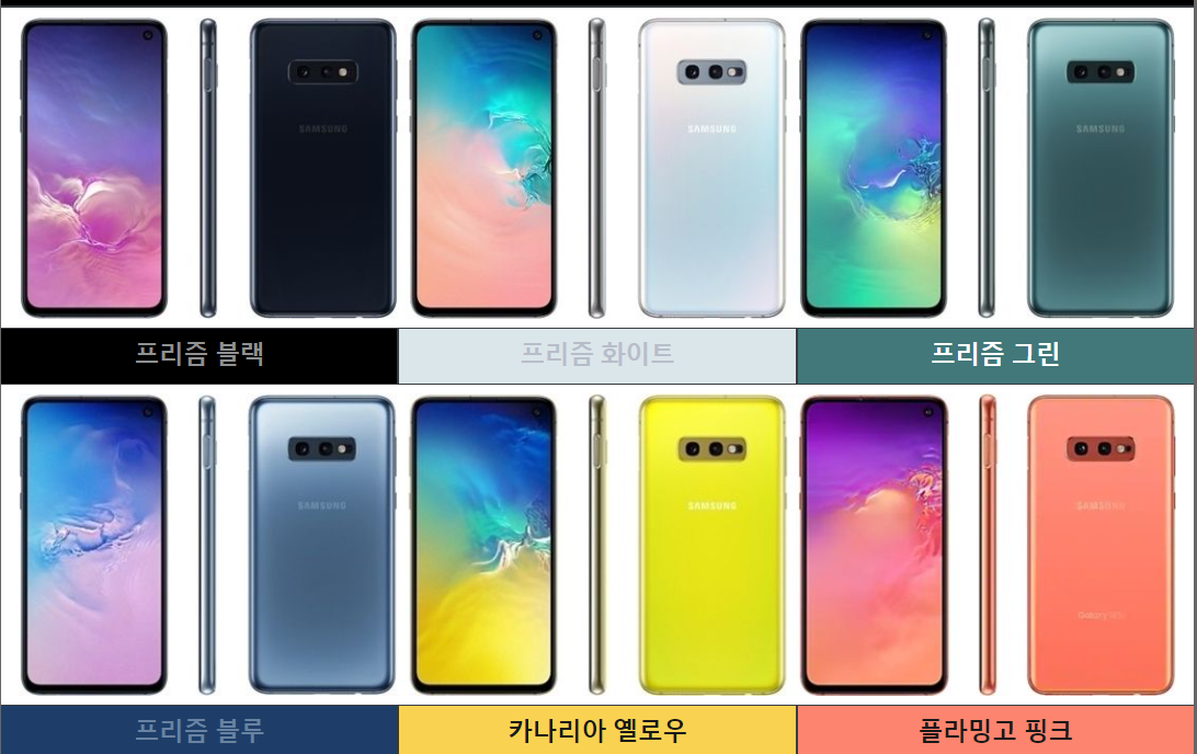 프리즘 블랙, 프리즘 화이트, 프리즘 그린, 프리즘 블루, , 카나리아 옐로우, 플라밍고 핑크