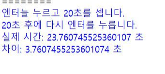 그 다음 다시 두 번째 input이 뜨고 이때 20초가 됐다고 느꼈을 때 다시 엔터를 누르면 그 시간은