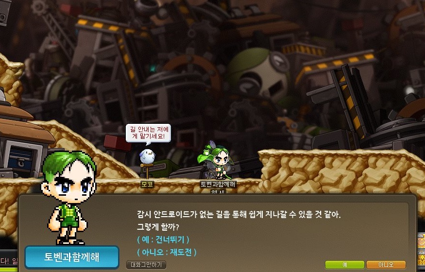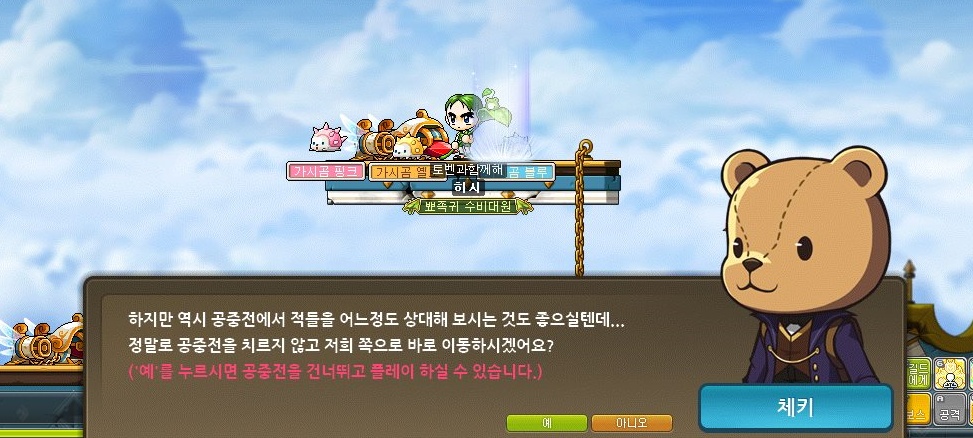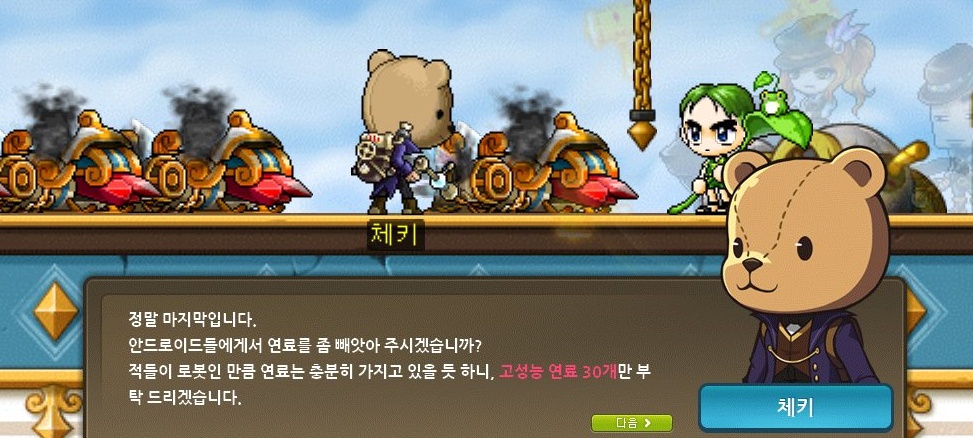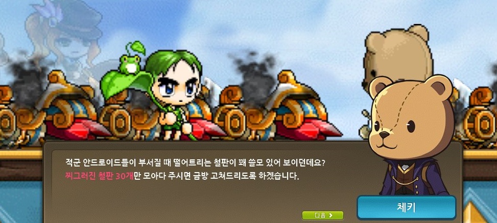 이때 타고가야할 미니 비행정이 망가져있어서 체키가