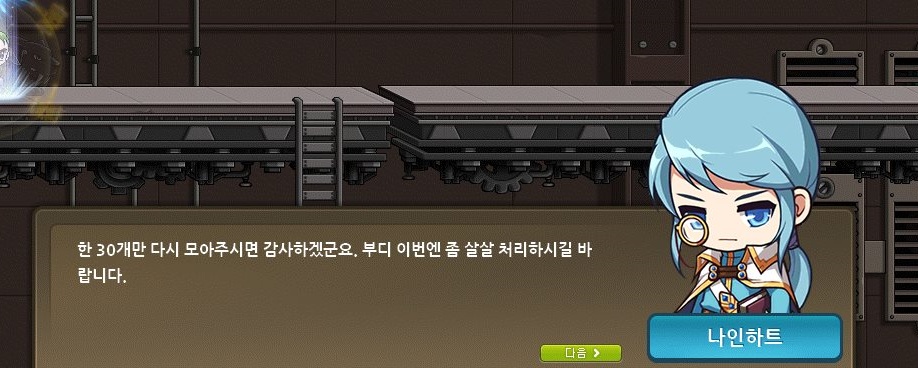 플레이어에게 수리에 필요한 자재들을 구해달라고 합니다.