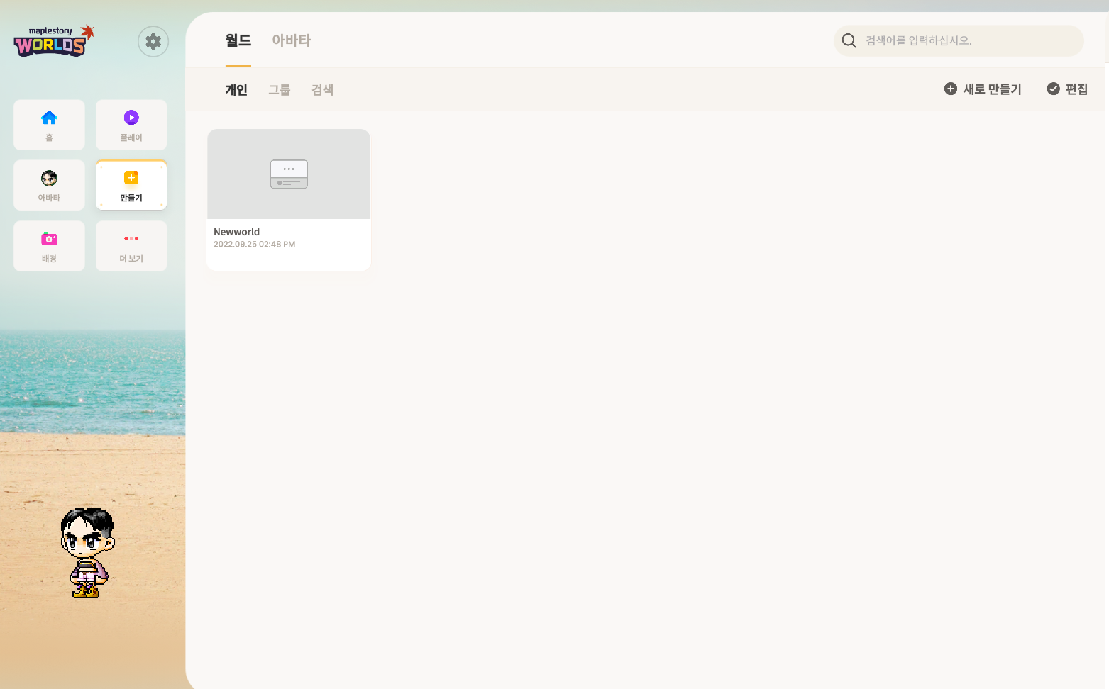 메이플스토리의 IP를 이용해 자신만의 월드(게임)을 만들어