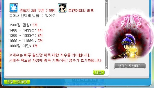점수를 기록하고 주간 보상을 꼭 받으셔서