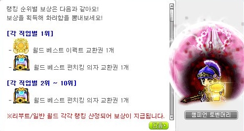 1위 ~ 10위 까지도 보상을 지급합니다.