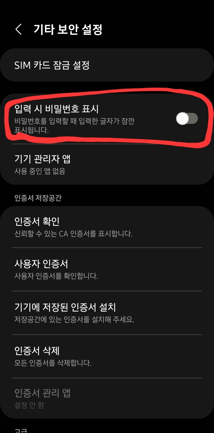 '입력 시 비밀번호 표시' 버튼을