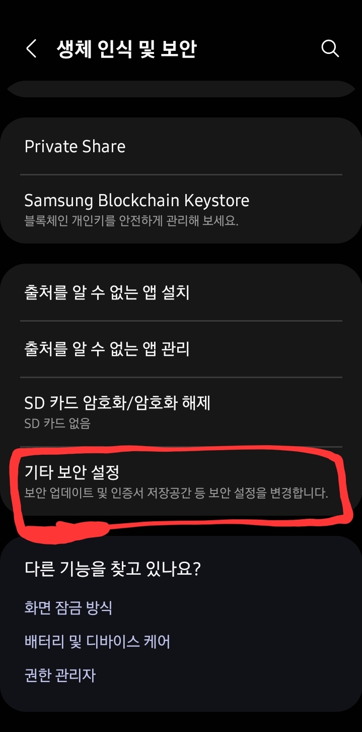 '기타 보안 설정'으로 들어간다.