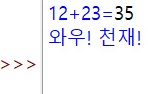 그리고 if문을 써서 a가 35일경우 "와우! 천재!"를 출력하도록 하고