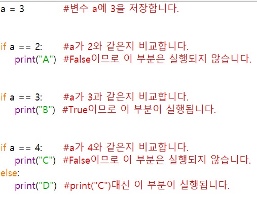a라는 변수를 선언 하고 값을 3으로 지정한 후 if문을 활용하여