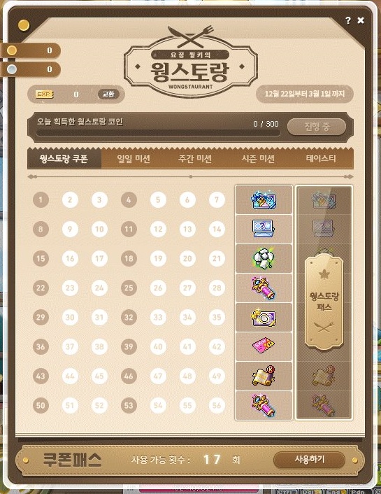 '웡스토랑'이라는 이름으로 코인샵 및 미니게임 이벤트가
