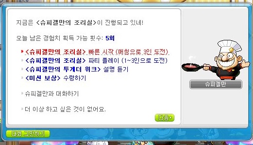 - 화면 좌측의 이벤트 알림이 또는 NPC 껨디를 통해 ‘[웡스토랑] 이번주 껨디가 미니게임 요리사!’ 퀘스트를 완료하여 이벤트에 참여할 수 있습니다.