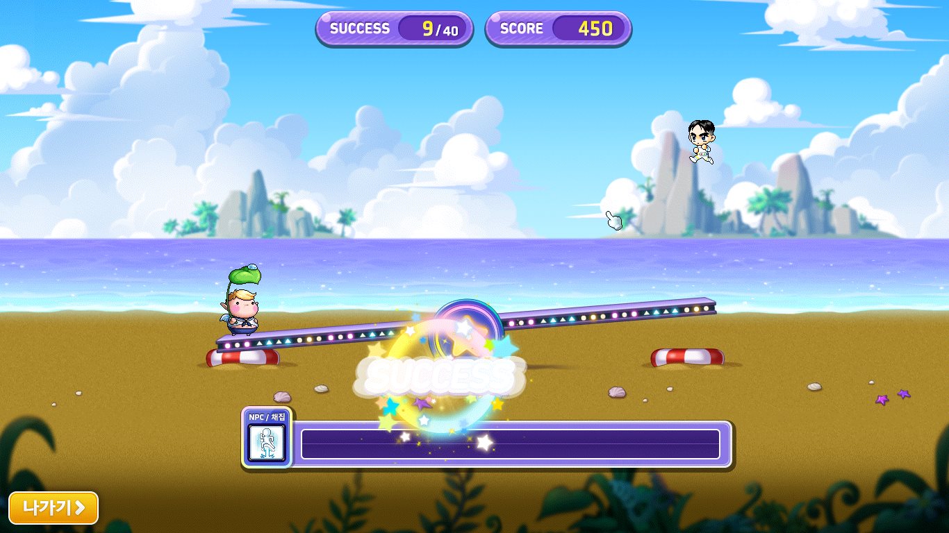 - 총 40번 점프를 할 수 있으며, 점프에 실패하거나, 40회를 모두 성공할 경우 게임이 종료됩니다.