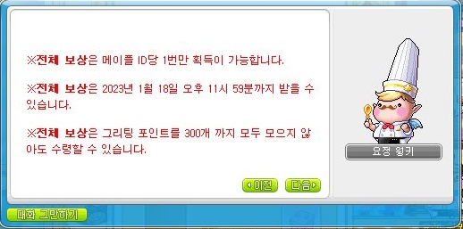 전체 보상은 메이플 ID당 1번만 획득 가능합니다.