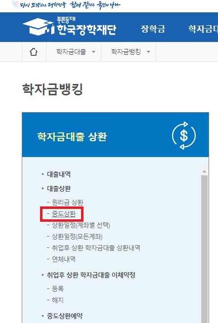 [학자금대출 상환] > [대출상환] > [중도상환]