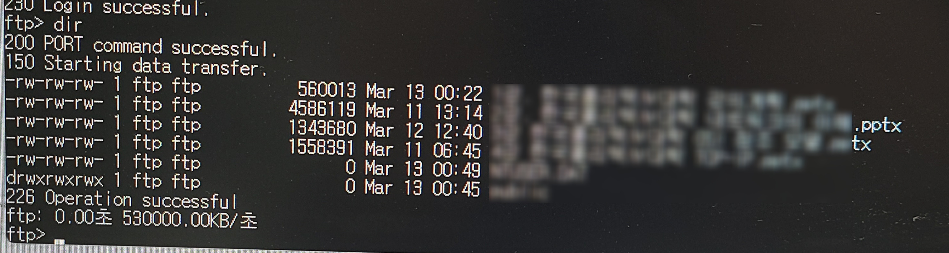 FTP 서버에 성공적으로 접속하면 ‘PORT command successful’이라는 문구가 뜨면서