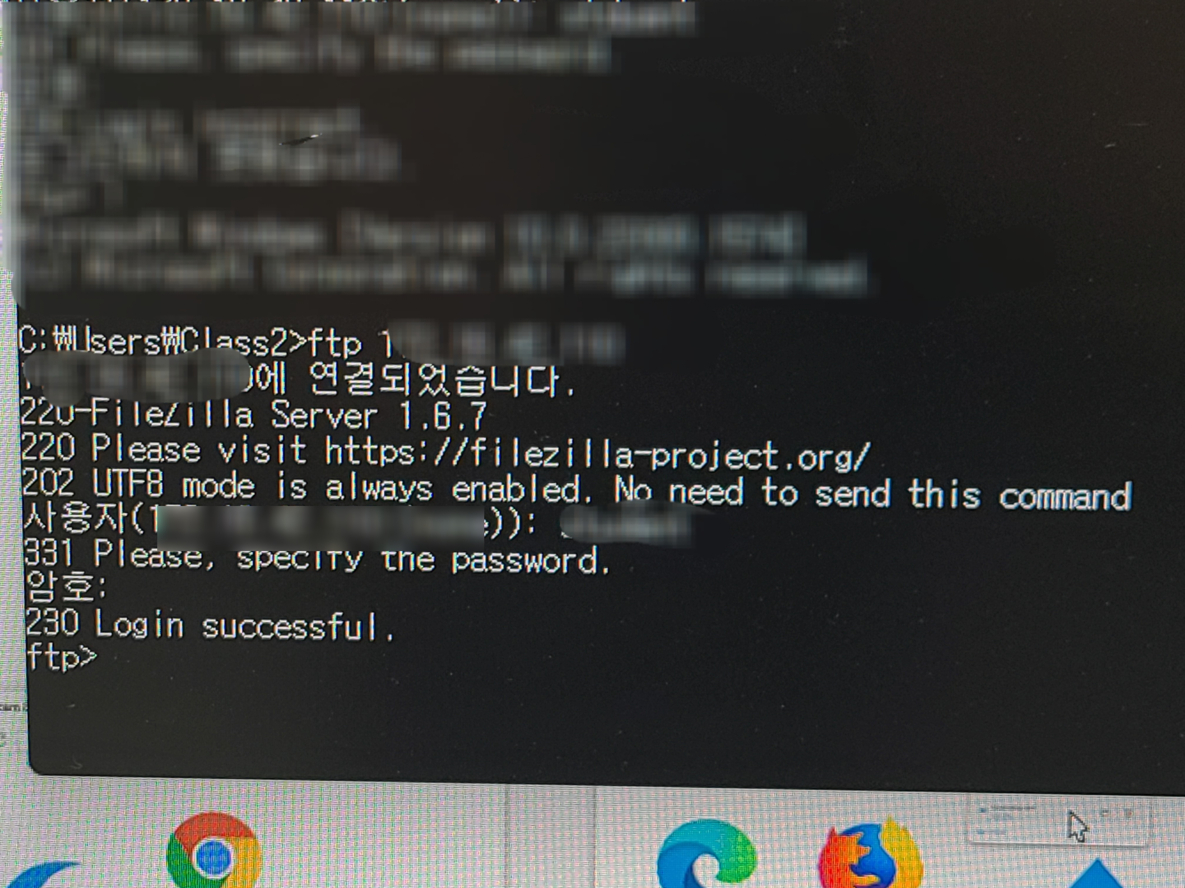 FTP 서버에 로그인을 하려면 ‘ftp ftp서버 ip주소’를 입력하여 파일이 업로드 되어있는