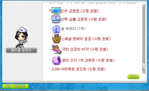 '유니온 아트펙트 및 각종 컨텐츠 오류 사과 보상' 클릭