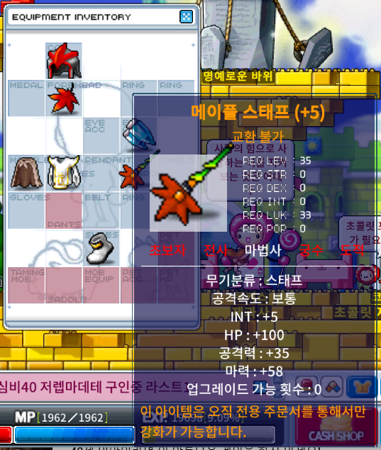 무기는 1주년 이벤트로 단풍잎으로 산 메이플 스태프