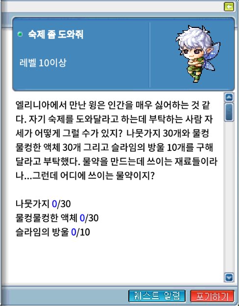 '숙제좀 도와줘'라는 퀘스트를 받을 수 있다.