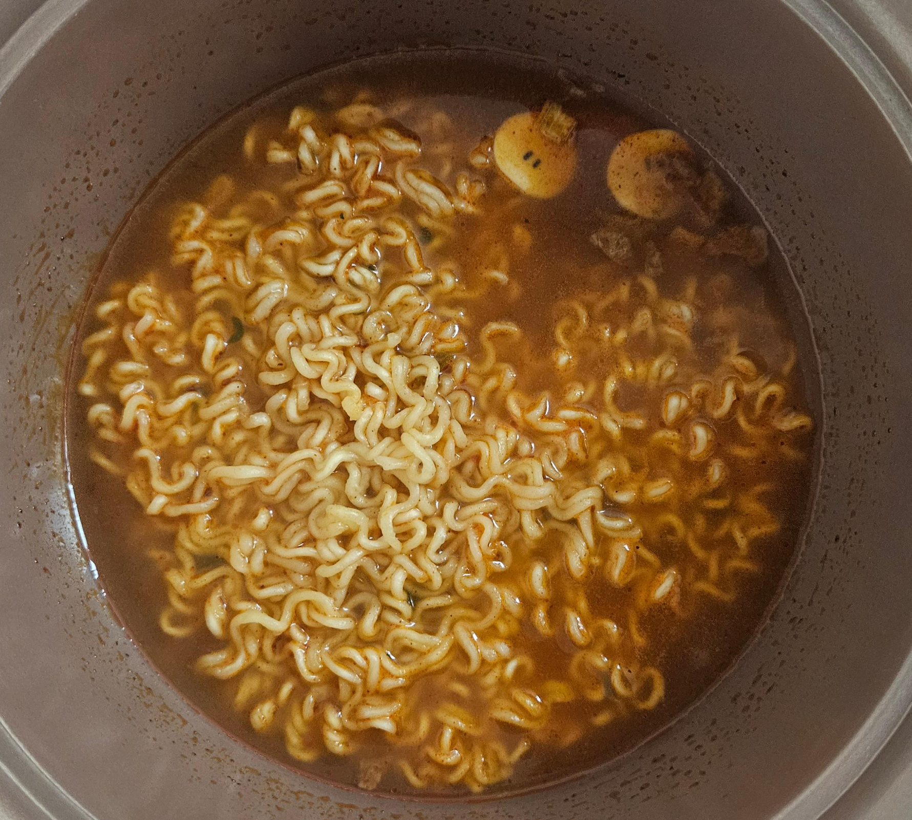 그런데 맵기조절스프를 안 넣었는데도 생각보다 매콤해서 놀랐다.