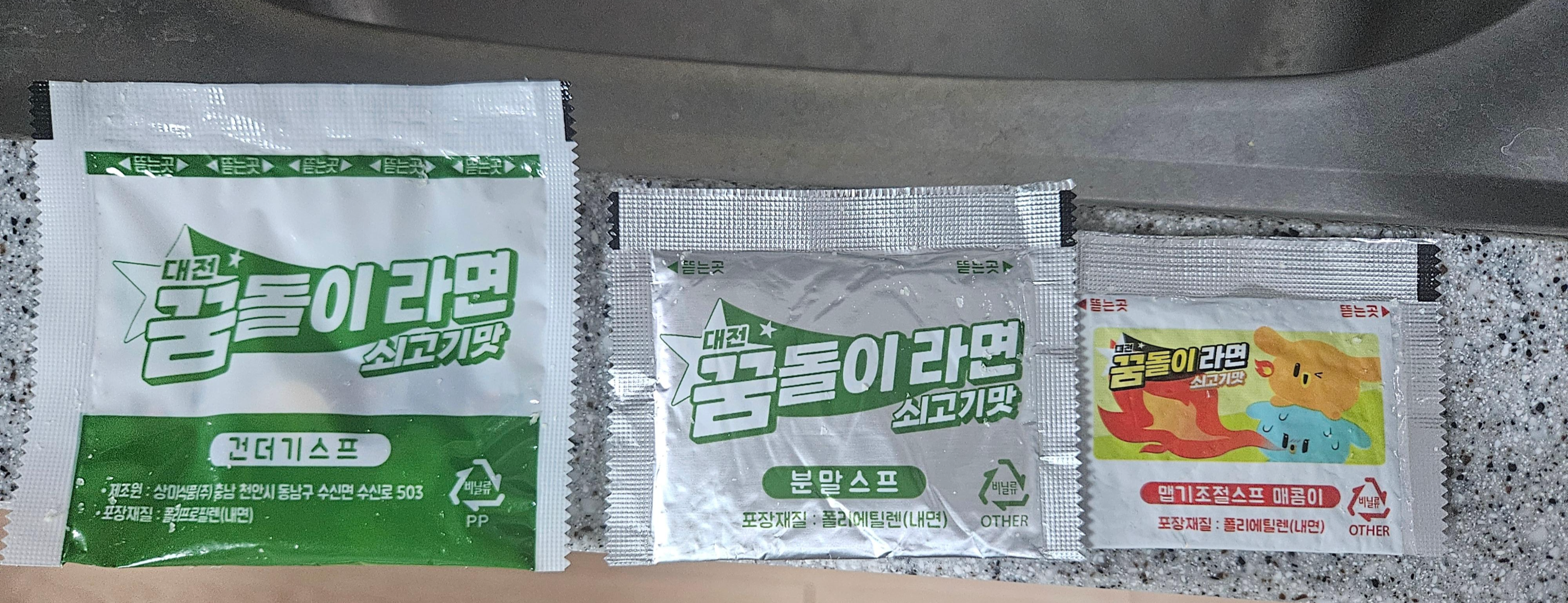 구성은 건더기스프, 분말스프, 맵기조절 분말스프로 이루어져있다.