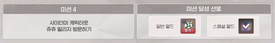 레벨 달성 이외에 행동 미션에 관한 보상도 있는데