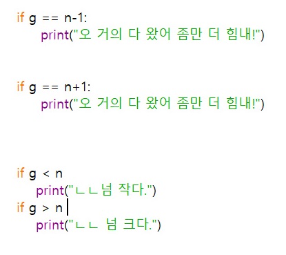 if g < n: 혹은 if g >n:을 이용하여