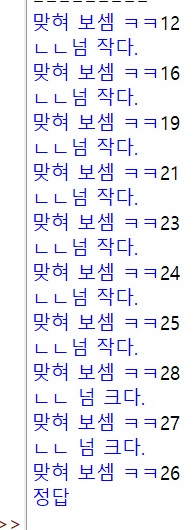 오답일 경우 유저가 입력한 수가 컴퓨터에서 제시한 수보다 크냐 작느냐에 따라