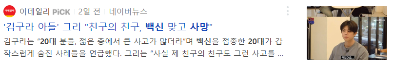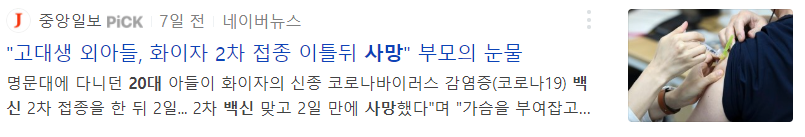 통계청에 검색을 해봐도 잘 나오지는 않지만 코로나 백신으로 인한 사망자 기사가