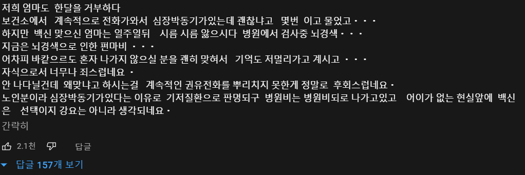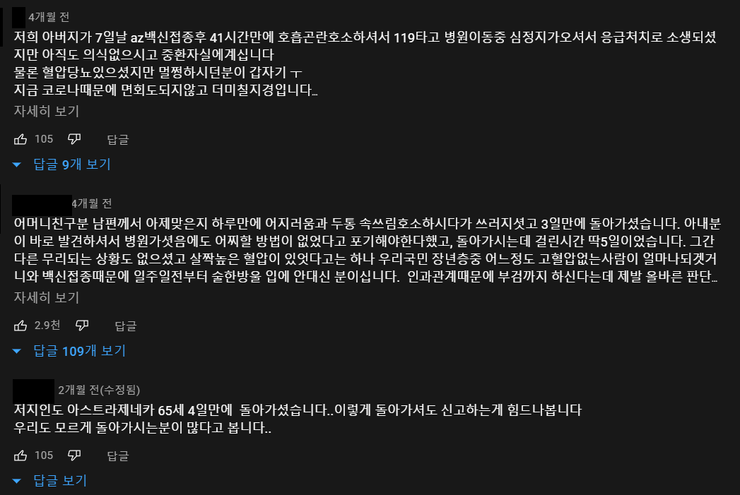 실제로 특별한 기저질환이 없는데 백신 접종 후 몇 일 혹은 몇 주가 지나서