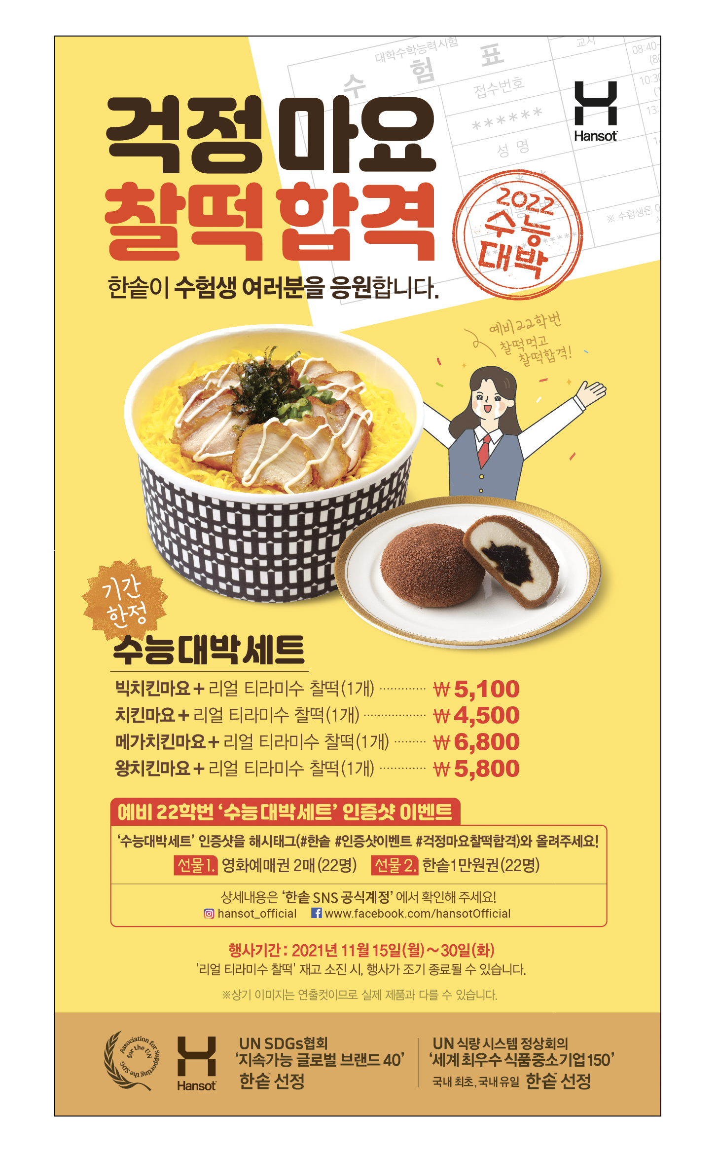 추가로 '수능대박세트' 인증샷을 해시태그(#한솥 #인증샷이벤트 #걱정마요찰떡합격)와