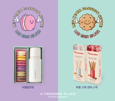신제품은 마카롱과 보온병을 함께 꾸린 '투썸 치얼업키트'와 '뚜론 스틱 견과 스낵' 2종이다. 수험생인 Z세대가 선호하는 밝고 화사한 디자인의 패키지에 재치와 응원의 메시지를 담았다.
