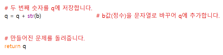 1. q = str(a) + str(b) 로 이미 문제는 완성됐는데 왜 그걸 q로 다시 return 시키는지...