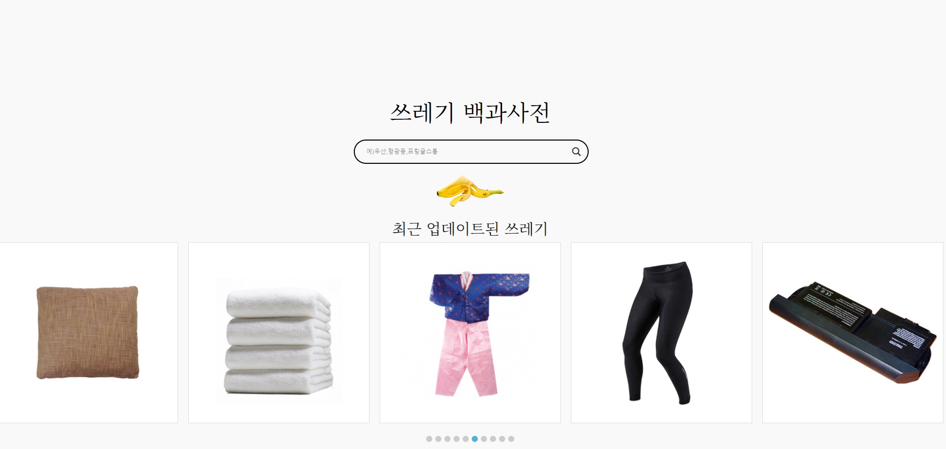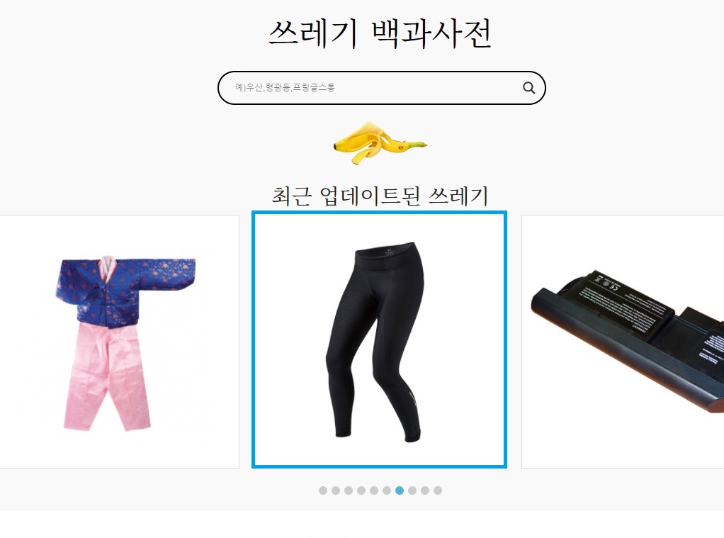 사이트에 접속하면 메인 중앙에 '쓰레기 백과사전'이라는 문구와 검색창이 뜨며