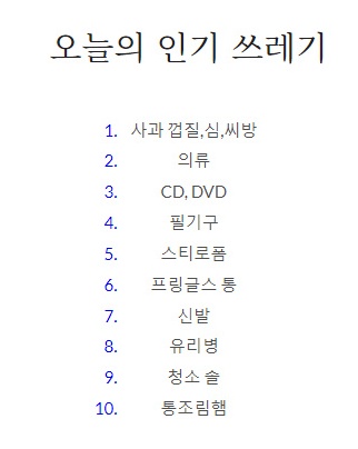 쓰레기를 1위부터 10위까지 보여줍니다.