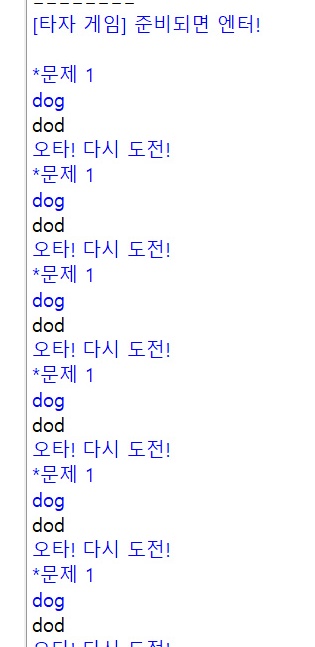 '오타! 다시 도전!'이라는 문구가 출력되게 한다.