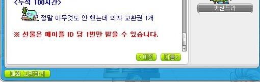 <누적 100시간> - 정말 아무것도 안 했는데 의자 교환권 1개